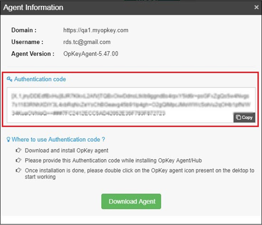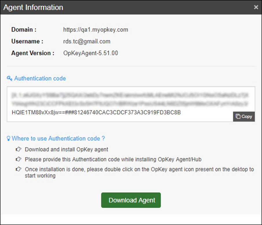 unique alphanumeric) for OpKey Agent which is available on the Download Agent