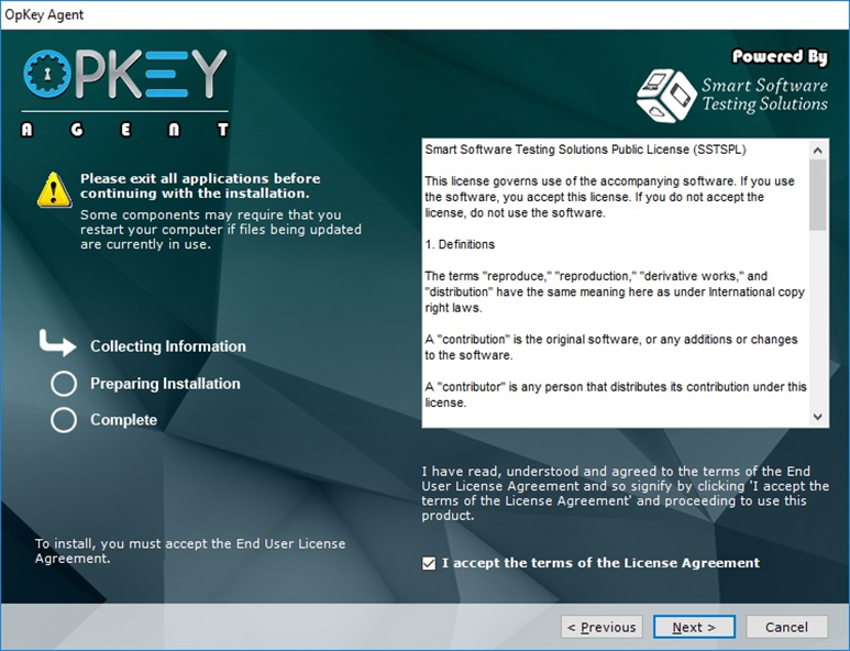 OpKey Execution Agent is a Functional Test Execution Engine which provides a GUI-based execution environment on the web. It follows the Open Test Architecture design by supporting the execution with any new plug-in. OpKey Execution Agent is necessary for executing Test on OpKey web.